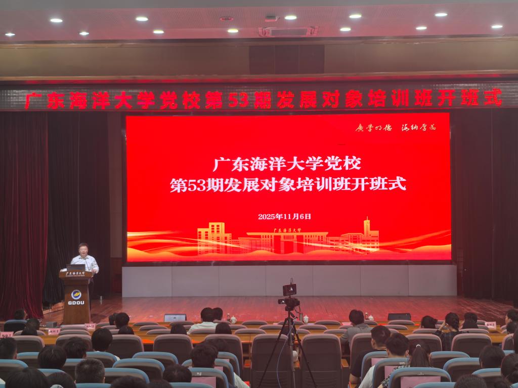 11月6日下午,学校党校第53期发展对象培训班在广学楼多功能厅开班,学校党委书记杨洲出席开班式并作动员讲话,湛江市直工委原副书记、二级调研员、市委党校客座教授吴璇瑛作专题辅导报告,学校二级党组织专、兼职组织员,第53期发展对象培训班全体学员参加开班式。开班式由学校组织部部长曾庆新主持。